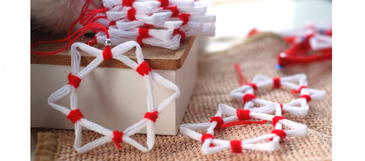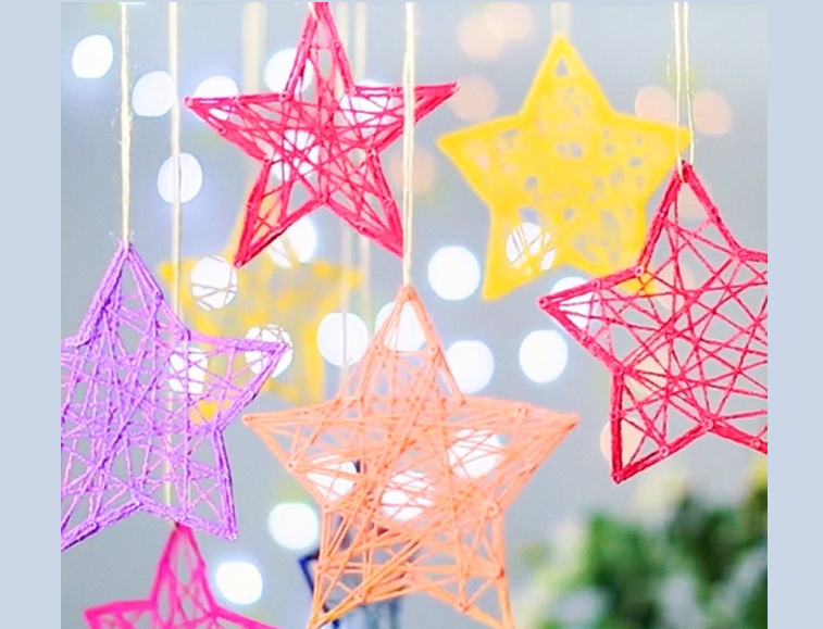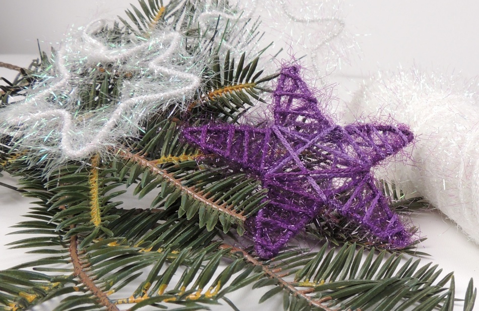 Зробіть повітряну зірку із звичайної пряжі для в’язання. Підійдуть будь-які яскраві кольори: червоний, сніжно-білий, ніжно-рожевий, насичений блакитний, зелений і так далі. Майстер-клас по створенню такої прикраси ви знайдете нижче.