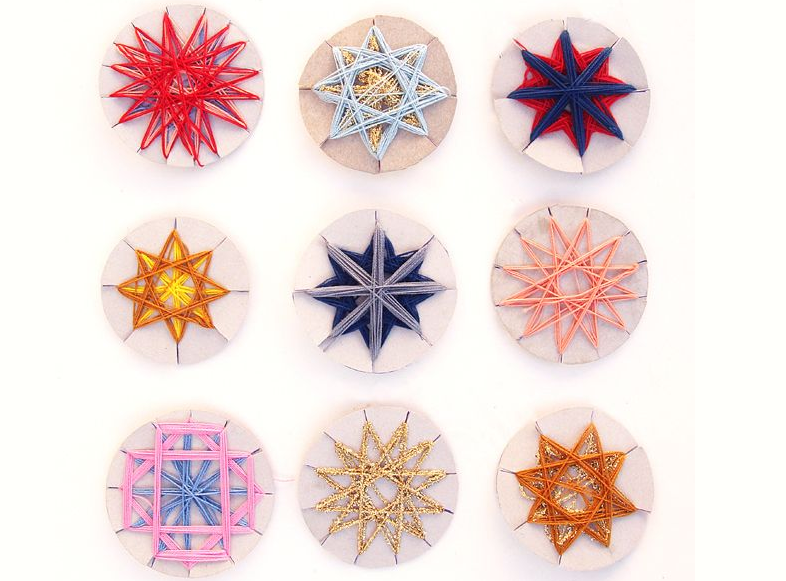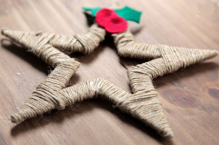 Для виготовлення цих зірочок використовувалися нитки х/б і швейні шпильки. Просто намотуйте нитки, а потім прикрасьте вийшло виріб шпильками.
