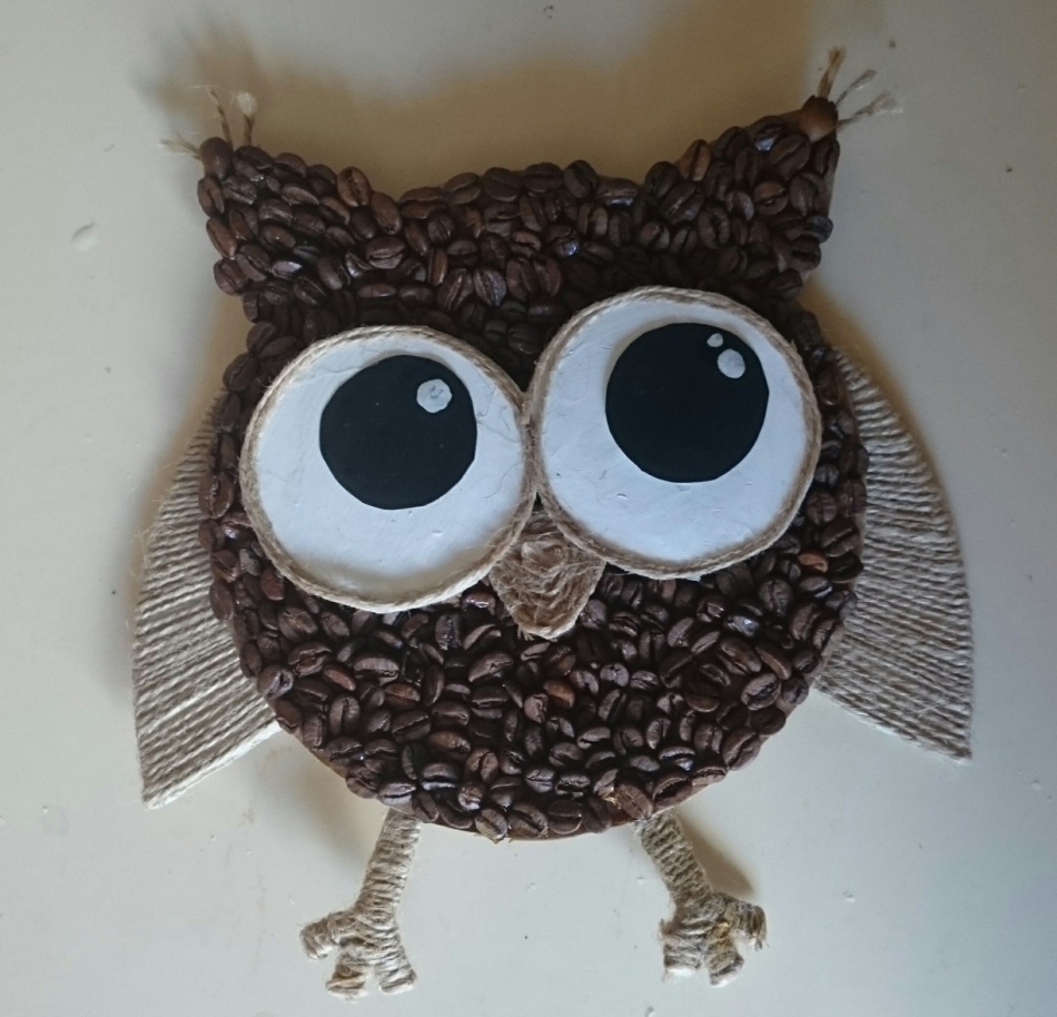Виріб із зерен кави: цікава сова