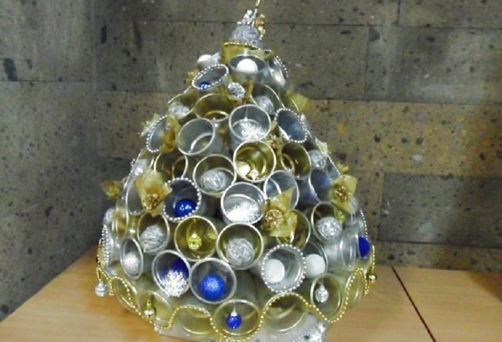 Продовжує новорічну тематику саморобна ялинка з пластикових стаканчиків