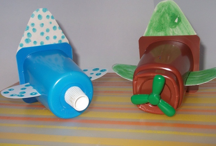 Для нього знадобляться пластмасові стакани в кількості 9 штук (бажано кольорові і з-під йогурту), дерев’яна шпажка, кольорова пластикова пляшка, повітряні кульки різних кольорів, шило, ножиці, канцелярський ніж.