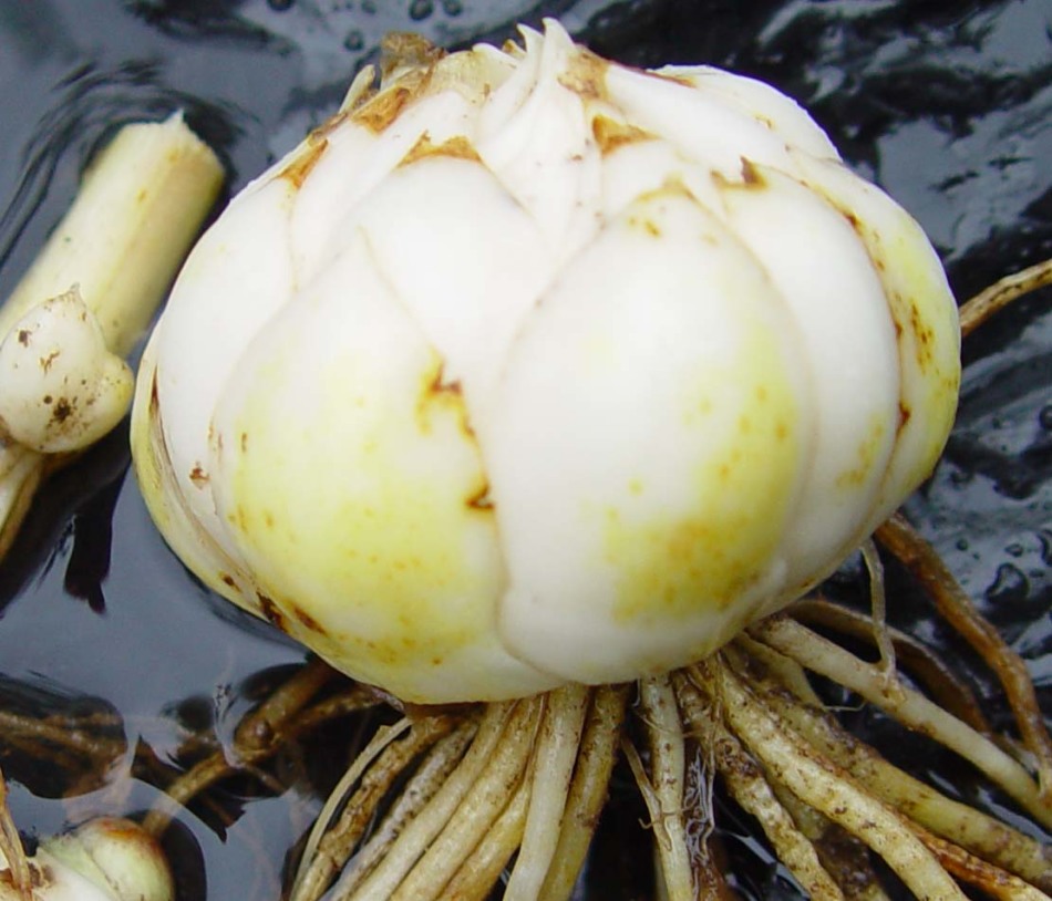 - Грунт регулярно розпушуйте і поливайте помірно, не допускаючи оголення частин лусочок.