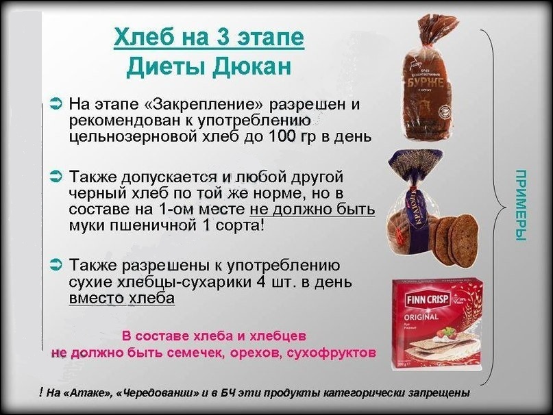 Скільки хліба дозволяється на 3 етапі дієти Дюкана