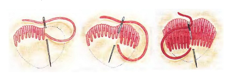 Спосіб 3. Якщо робота вже закінчується, то нитка може бути закріплена через маленьку протяжку під стібками з виворітного боку. Якщо ж нитка закінчується під час роботи, то закріпіть її з лицьової сторони парою стібків в місці, яке потім закриється вишивкою.