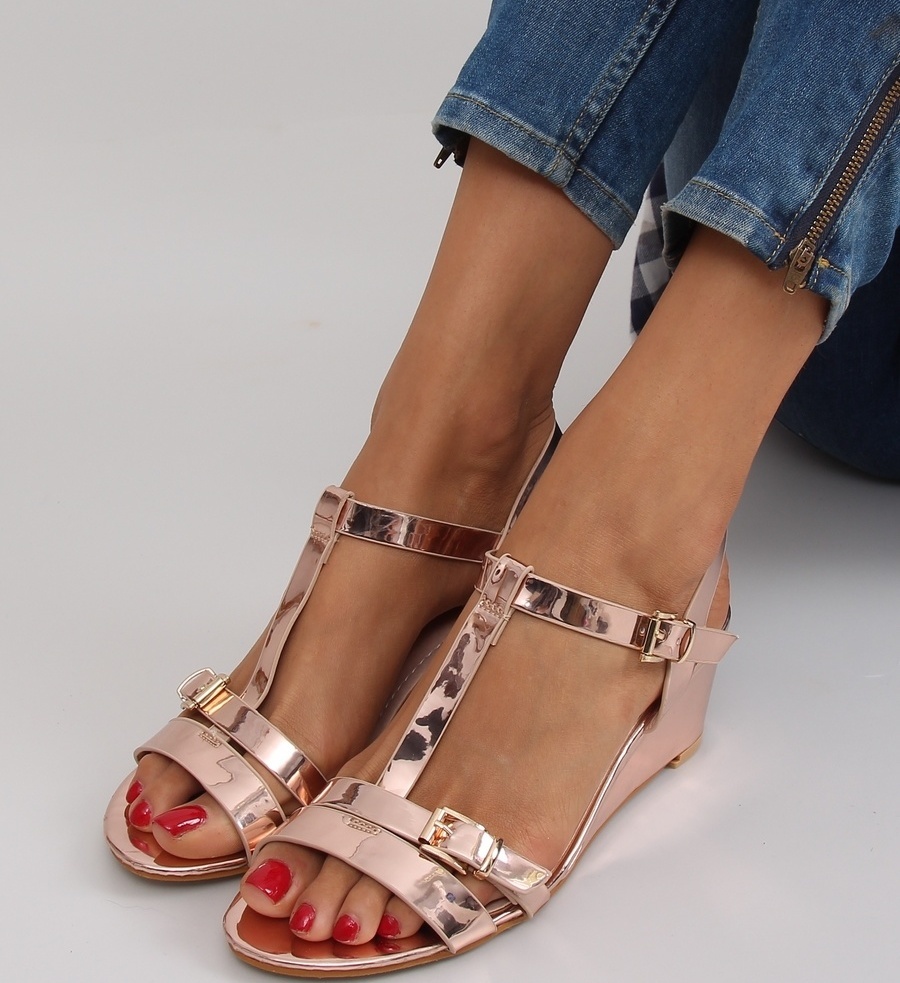 Рожевий металік на низькому каблуці і обов’язково з ремінцями, щоб бути в тренді. Такі босоніжки прикрасять образ для прогулянки, відпочинку на набережній або навіть в клубі.