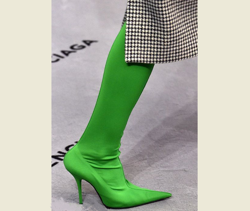 Чоботи-панчохи на шпильці — хіт сезону. Така модель взуття повинна мати гострий носок і більш виражену лінію п’яти.