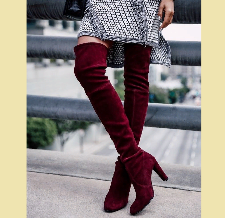Такі чоботи можна по праву назвати вінтажними. За часів молодості наших мам в моді був і такий каблук і оформлене таким чином халяву. Бордовий колір підкреслює статус і оригінальність.