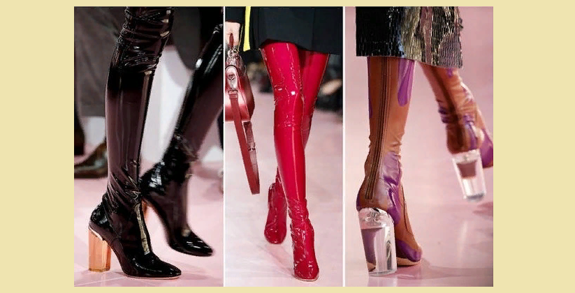 Лакові чоботи-панчохи зі скляними підборами — тренд цього сезону. Взимку теж можна бути яскравим, модним і виглядати незвично.