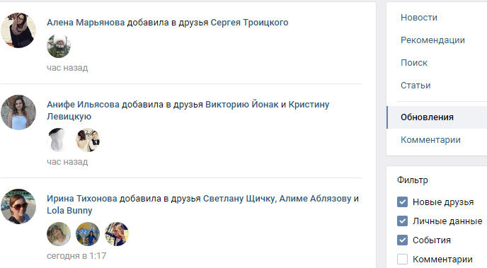 Одразу видно, кого додав у друзі той чи інший користувач, ви також побачите новини не тільки своїх друзів, але і груп.