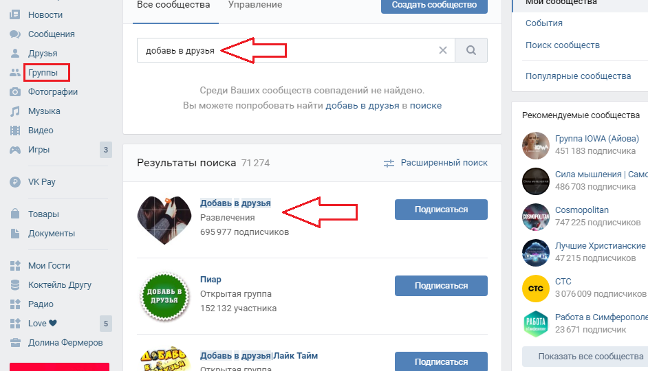 - У пошуку напишіть «Додай в друзі».