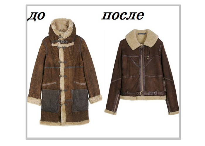 - Ще один приклад, коли з масивної моделі зробили коротку, зручну і привабливу дублянку.