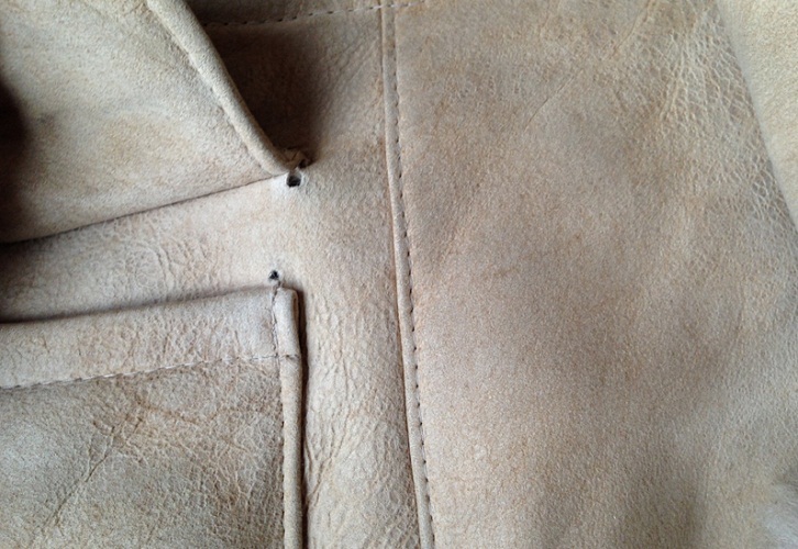 - за правилами, шви у такого щільного матеріалу відбиваються, особливо якщо використовується кромка. А вона допомагає уникнути розтягування матеріалу. Для цього необхідний молоток і гранітна або кам’яна плита 20 на 30 см, оскільки на дереві дублянку не відбити. Саме ця маніпуляція допоможе уникнути вибивання нитки, і допоможе випрямити шов, що скріплює дві деталі між собою. А також зробить потрібне місце більш тонким для прокладання оздоблювальної строчки.