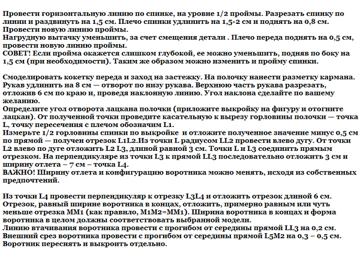 - І залишається вставити блискавку, зробити кишені або нашити їх і прикрасити коміром, манжетами або поясом.