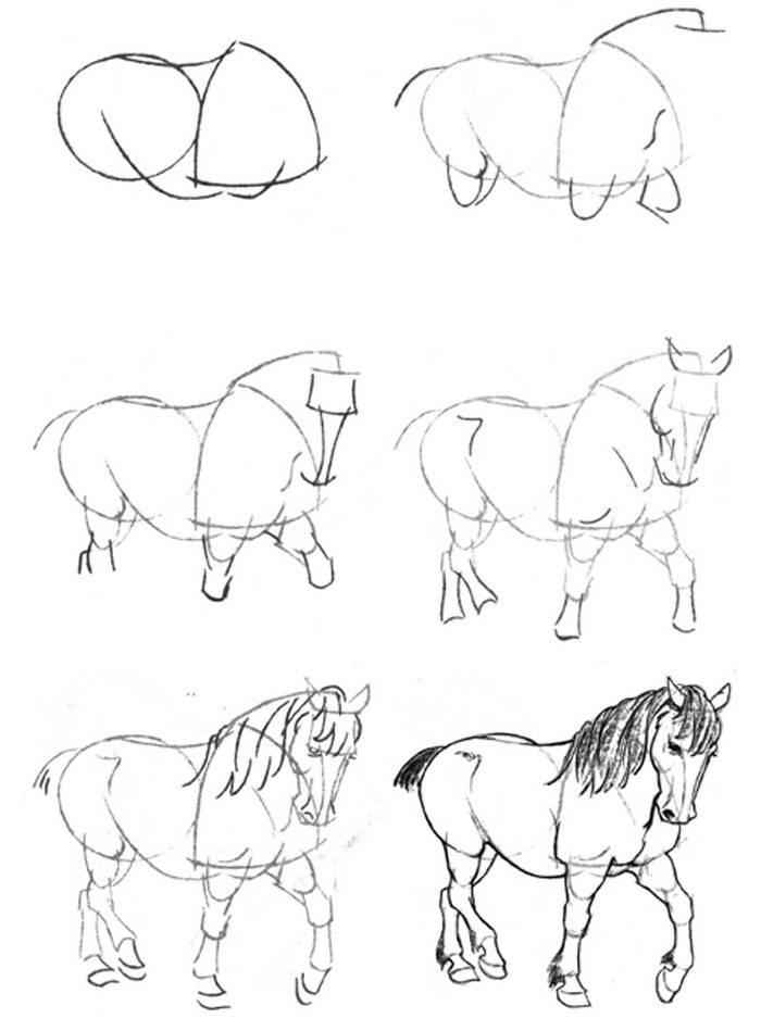 Як намалювати коня поетапно олівцем: уроки для дітей