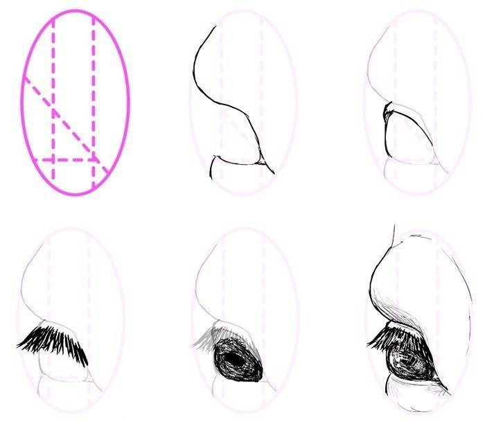 - Накресліть вертикальний овал і поставте напрямні, як зазначено на схемі.