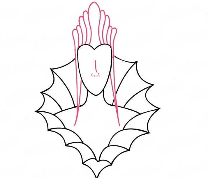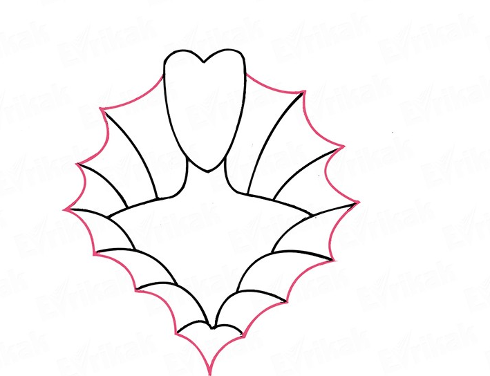 - З’єднуємо рівними лініями центр зигзагів і нижньої кривої, маленькі гуртки на кінчиках.