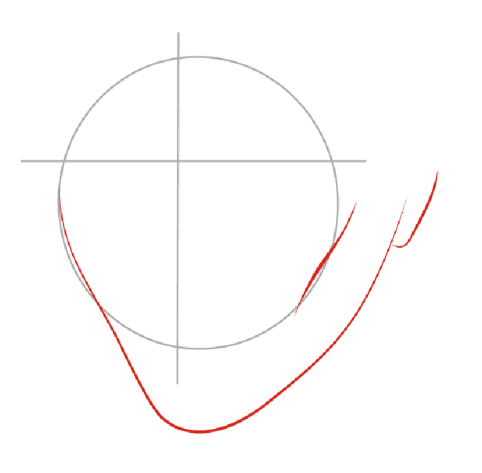 - Використовуючи ескіз основи, формуємо трохи нижче кола підборіддя і контури особи.