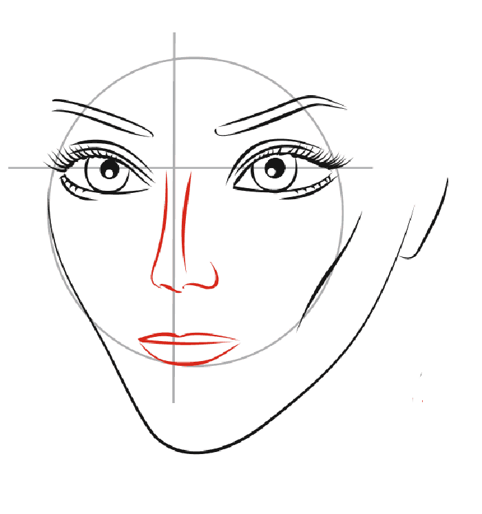 - Довгий і правильний ніс зображуємо, використовуючи вертикальну лінію