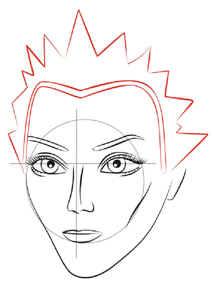 - Верхню частину лоба робимо трохи хвилеподібною, так як початок корони має таку форму.