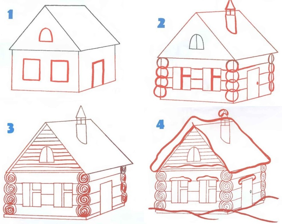 Замислюючись про те, що можна намалювати в зимовому пейзажі, перше, що приходить в голову, це будиночок. Будиночок присутній у людській свідомості з дитячих часів, з тих пір, як дитина вперше бачить казку про Морозко або лісових звірів. Не важливо, який саме будиночок уявляєте ви, головне – намалювати правильно.