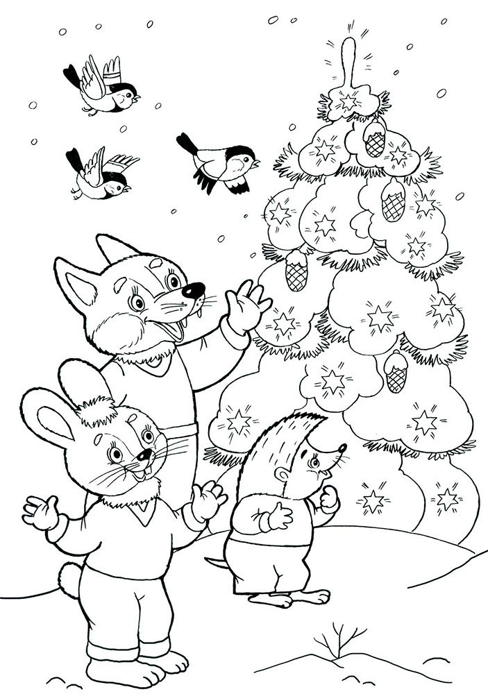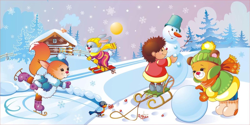 Малюнки про зиму з дітворою і тваринами для початківців і для дітей срисовки: фото