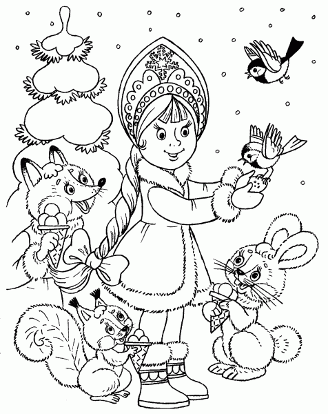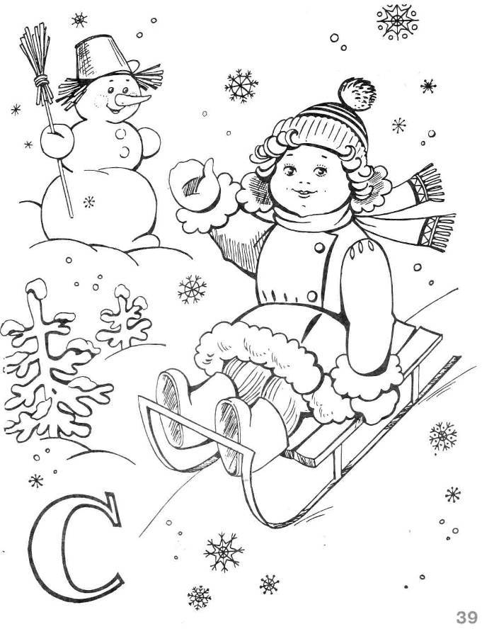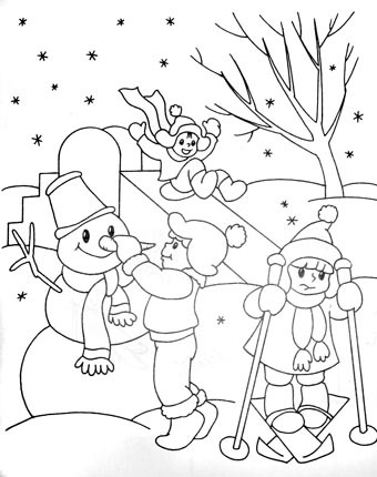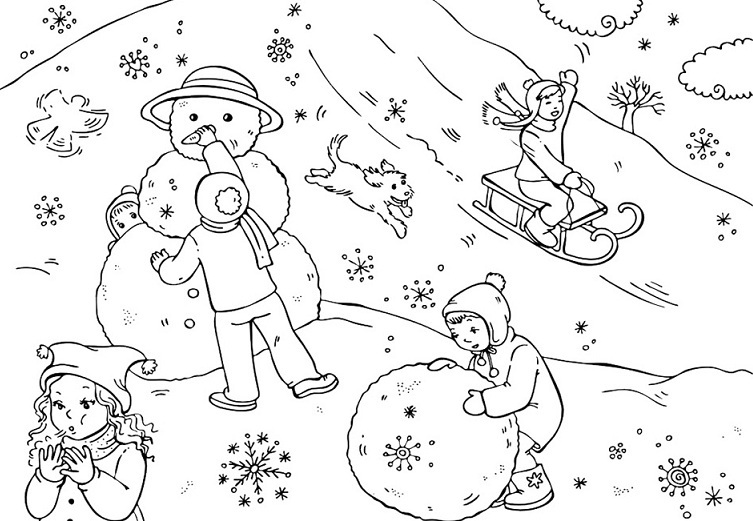 - Малюнки про зиму з дітворою і тваринами для початківців і для дітей срисовки: фото
