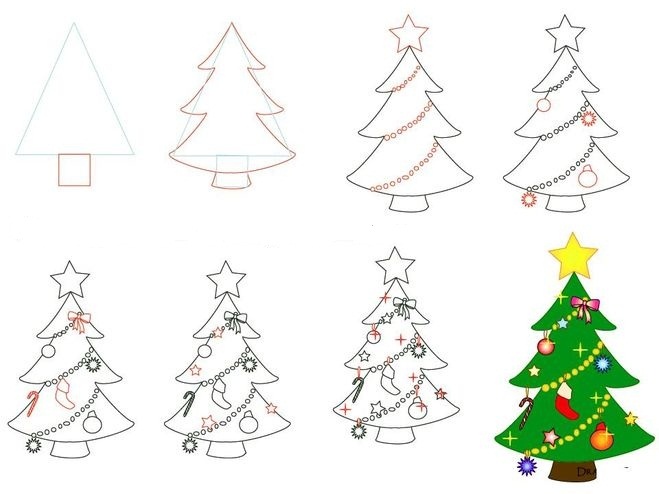 Варіантів почати малюнок ялинки кілька.