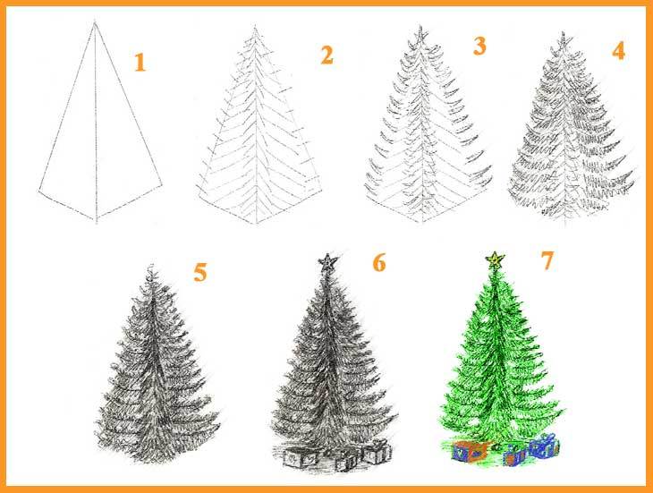 - Як намалювати новорічну ялинку поетапно легко і красиво олівцем для початківців і дітей?