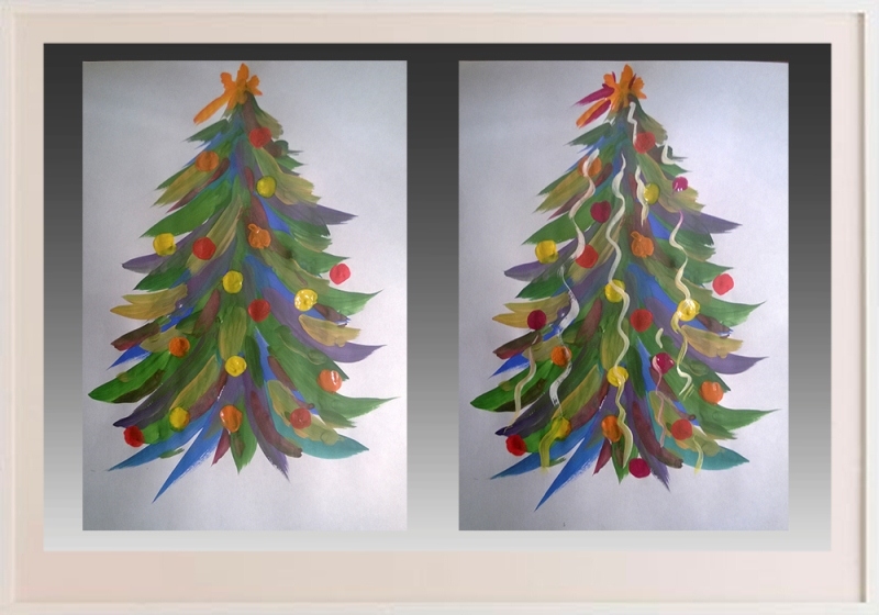Після подрисовывается пухнастість ялинки за допомогою пензлика та фарб.