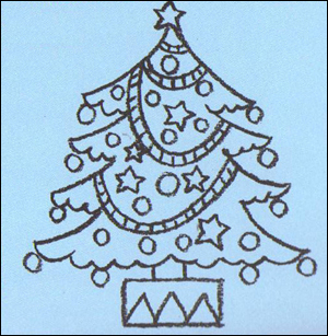 Малюнки новорічної ялинки олівцем і фарбами для дітей для срисовывания