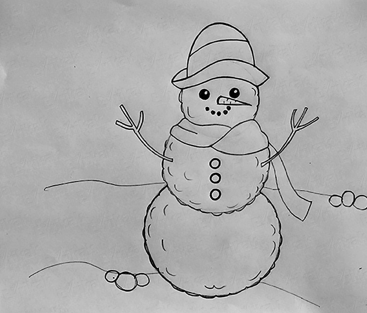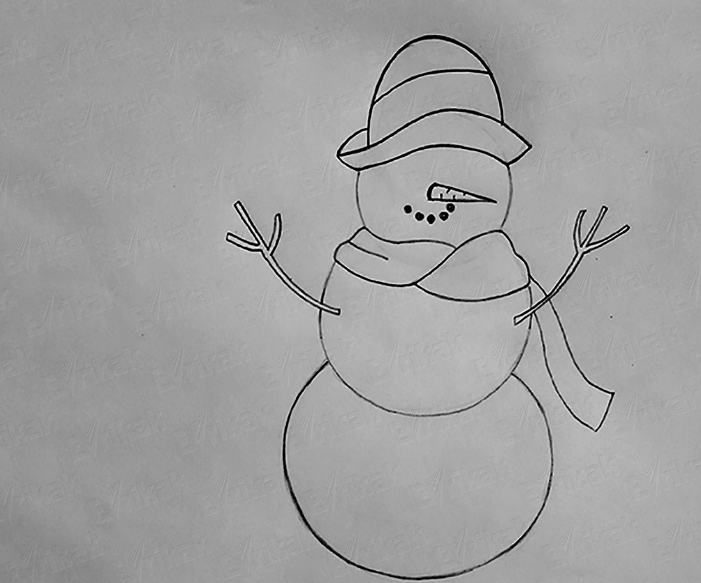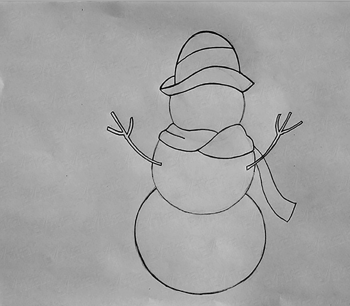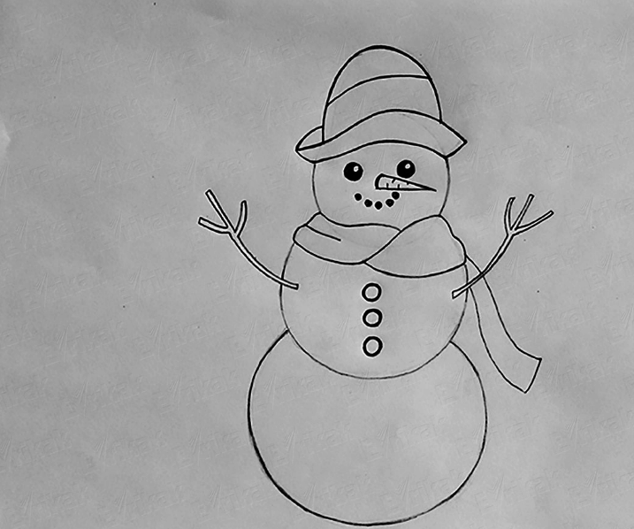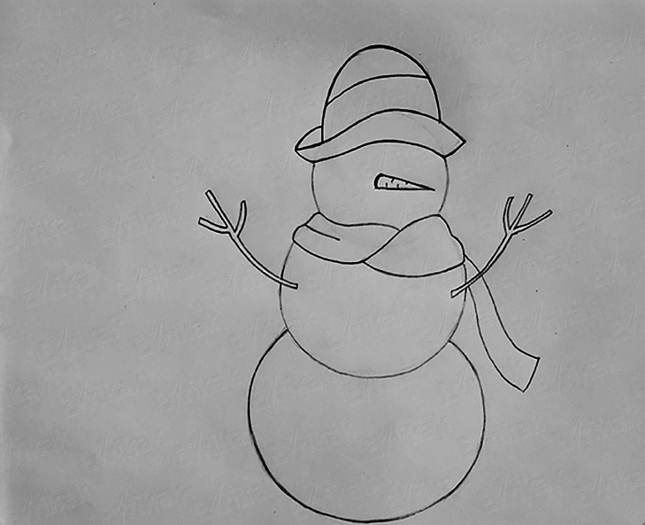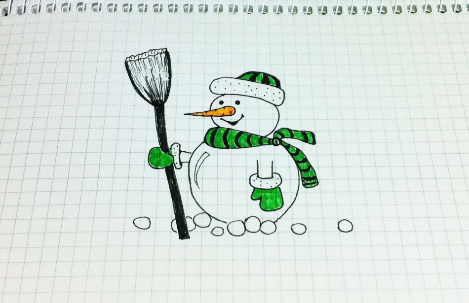 - Малюємо акуратно, не заходячи за контури снігового героя.