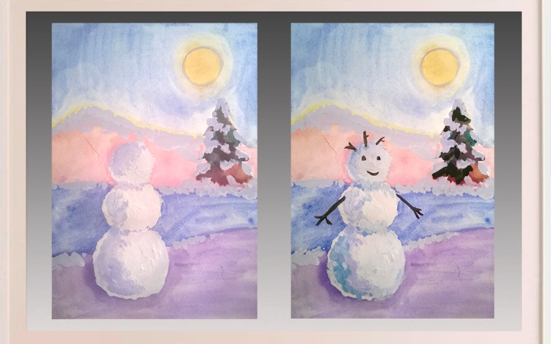 Як намалювати сніговика поетапно фарбами, для дітей і початківців?