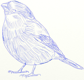 - Тут все досить просто. Обводимо олівцем хвіст, кінцівки і більш детально опрацьовуємо дзьоб, позначаємо пір’я на крилах і голові.