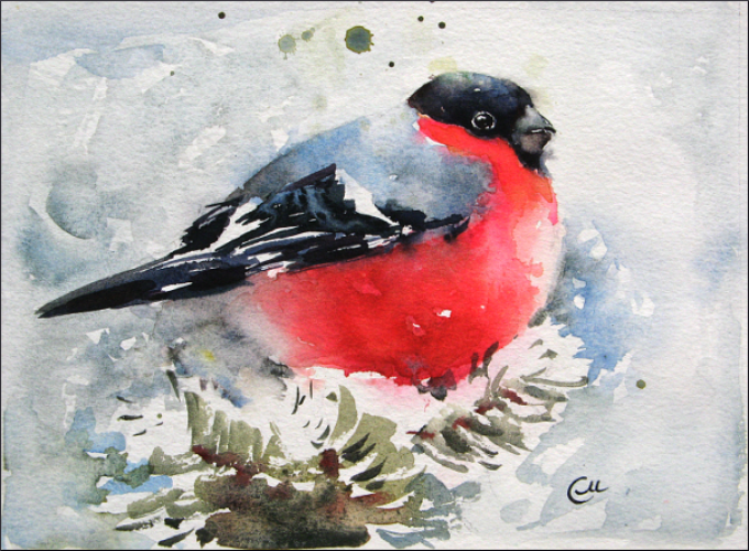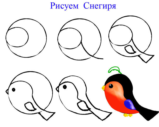 - У дитячих книгах, журналах, листівках можна знайти різні картинки з красногрудыми пернатими. Беручи до уваги наші поради, ви без праці перенесете вподобане зображення снігура на папір, а результатом своїх намагань зможете похвалитися рідним або знайомим.