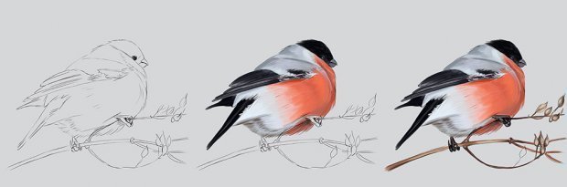 Якщо вам потрібно намалювати новорічний плакат, то без зображення ошатних красногрудых пташок вам просто не обійтися. Дотримуючись нашої покрокової інструкції, ви зможете здивувати друзів своїм художнім талантом і креативністю, а також навчити свою дитину працювати з фарбами.