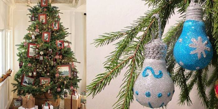 - Вийшли з ладу лампи розжарювання. Лампочки розписують під новорічні іграшки. Виходять стильні Дід Мороз, Снігуронька, сніговики, пінгвіни. Додатково лампи декорують тканиною.