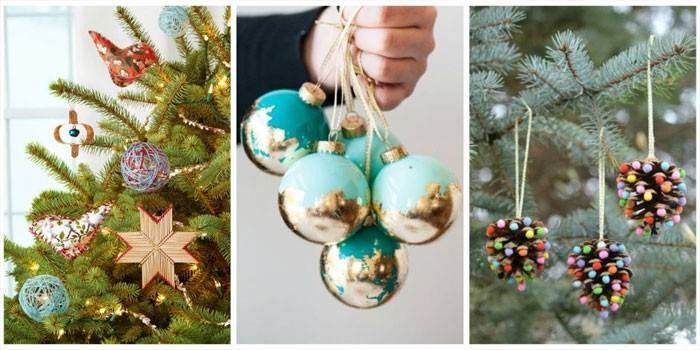 Якщо під Новий рік в будинку не виявилося святкових прикрас, виготовте стильне оздоблення для хвойної красуні своїми руками. Є ідеї прикрас з підручних речей, продуктів. Стильно виглядають в’язані іграшки, саморобні декупажні або нитяні кулі.
