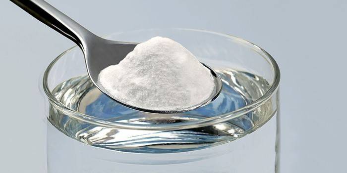 - Кандидоз. Застосування в лікувальних цілях харчової соди повністю безпечно. Взяти 1 ч. л. речовини і розчинити у склянці кип’яченої (теплою) води. Робити спринцювання або в розчині змочити стерильний бинт і обробити пошкоджені поверхні. Лікування питною содою допомагає зняти свербіж і подразнення. Для цього необхідно кілька разів на день проводити підмивання слабким розчином – на 1 л води береться 1 ч. л. речовини.