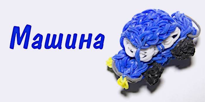 Щоб з Rainbow loom сплести цікаву фігурку машинки для хлопчика потрібно верстат з рівного встановленими рядами, силіконові гумки, гачок. Покрокове виконання роботи: