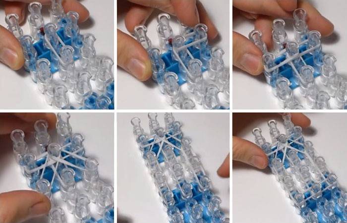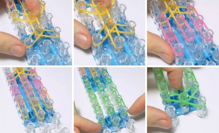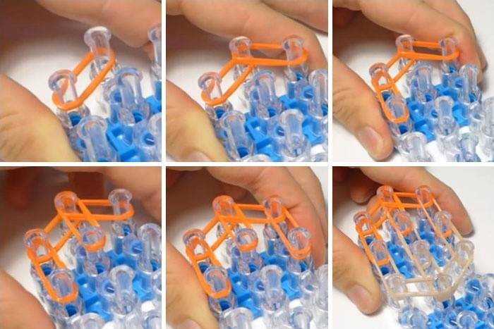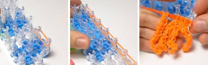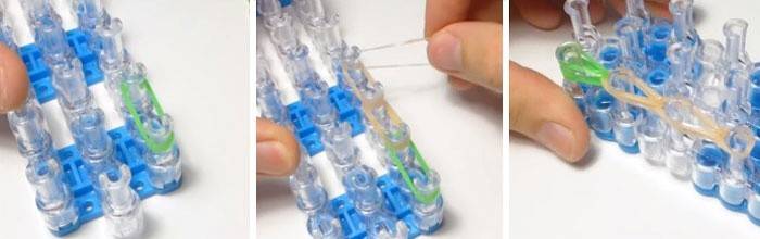 • Надягаємо Rainbow loom за схемою, згідно з фото: