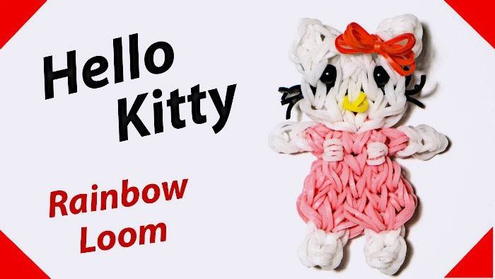 Хеллоу Кітті можливо сплести з райдужних гумок і класичного великого верстата. Зробити це допоможе докладний майстер-клас по створенню фігурки: