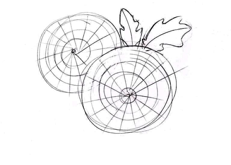 - Почніть роботу з створення схеми-малюнку. В центрі аркуша намалюйте пересічні кола (одна — трохи більше іншої). Не забудьте накидати листочки рослини