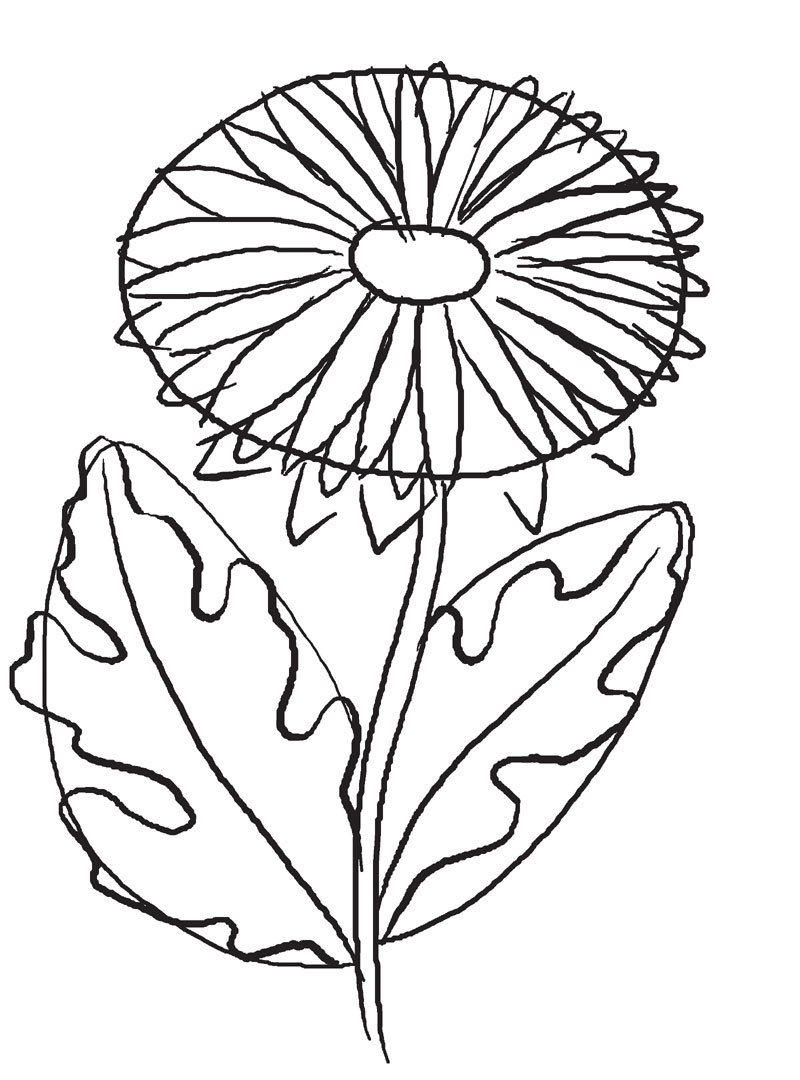 - І в цьому випадку все починається з двох овалів (великого і малого) — для квіткової головки двох паралельних ліній — для стебла