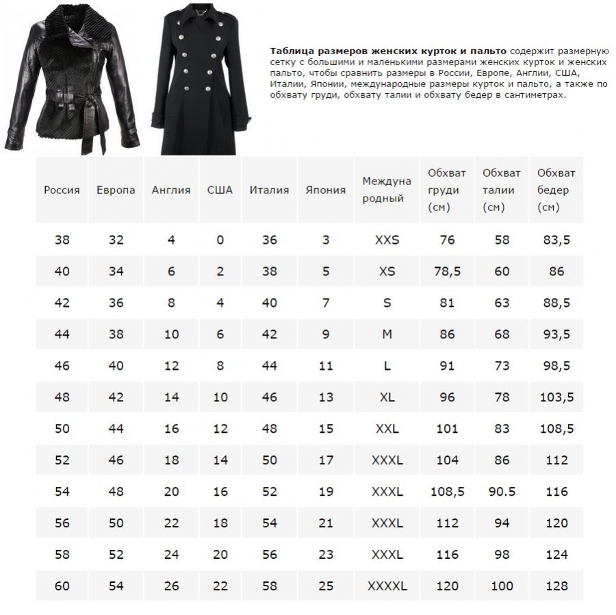 Залишається тільки ознайомитися з розмірною сіткою і підібрати максимально наближений розмір.