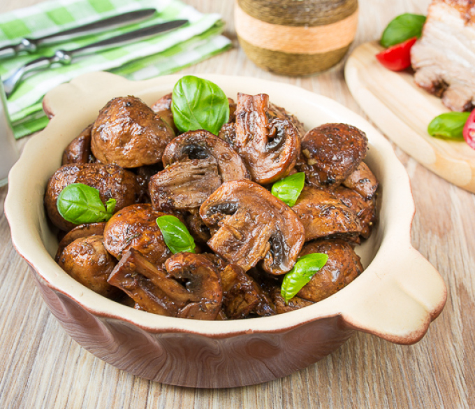 • Розігрійте духовку до 180С і запікайте печериці 30 хв