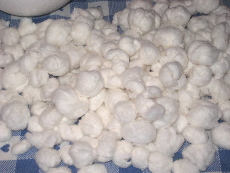 • Скачайте кульки з вати різного розміру. Для цього просто відірвіть шматочки і посжімайте, покатайте їх у руках.
