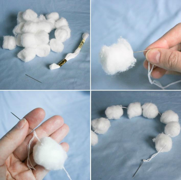 Сніг, грудочки снігу з вати на нитці для гірлянди: як робити?