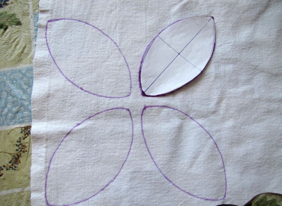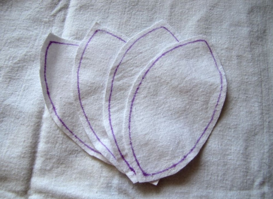 • Виріжте з білої тканини 4 пелюстки. Нижче представлені лекала