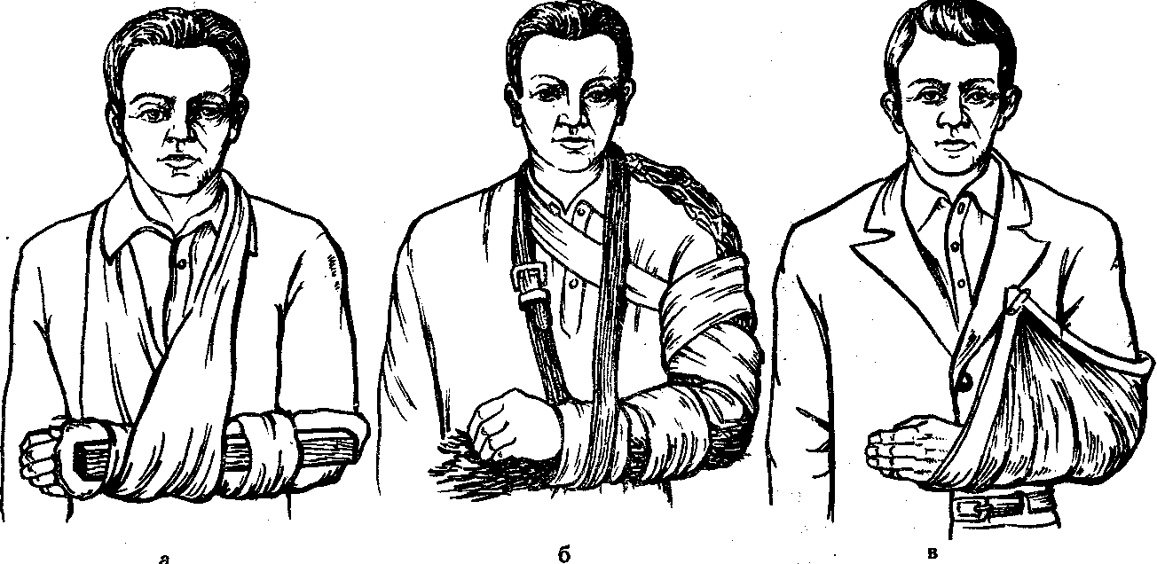 - У разі перелому, який знаходиться в області передпліччя або плеча, при відсутності шин і будь-яких твердих поверхонь, проводиться фіксація хворої кінцівки безпосередньо до тулуба.