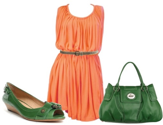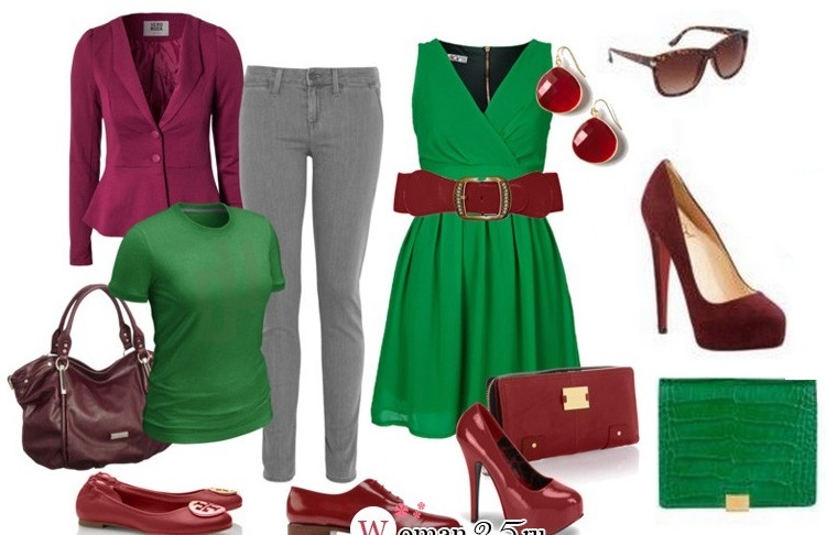 Здавалося б, зелений і червоний — два абсолютно протилежних кольори. Крім того, червоний — колір «теплий», а зелений, тим більше смарагдовий, «холодний». Однак поєднання смарагдового сукні і червоних туфель — одне з найкращих.